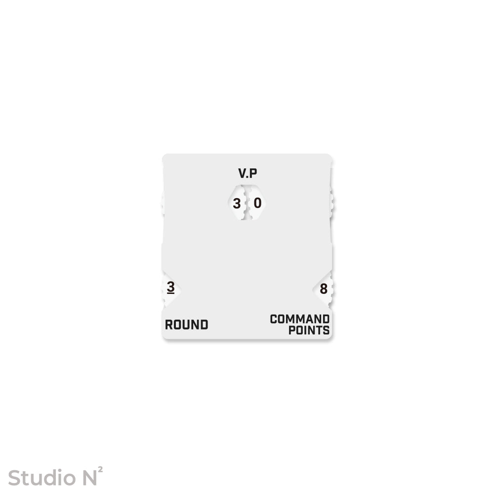 V.P(Victory Point)を最大99まで、CP(Command Point)を0〜10まで、ROUNDを1〜5までカウント可能です。